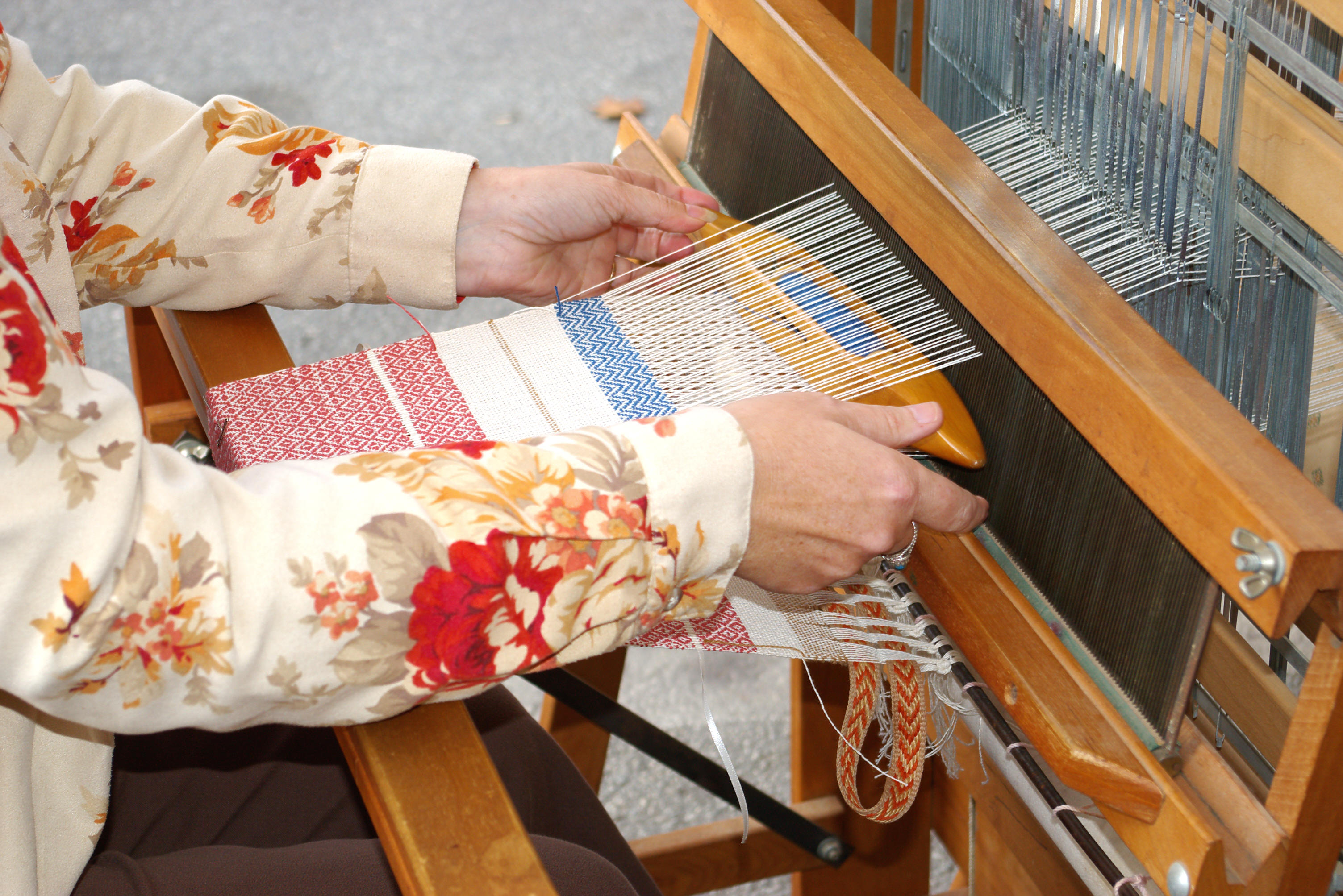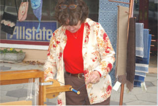 Shown here weaving on my 22 inch demo loom.