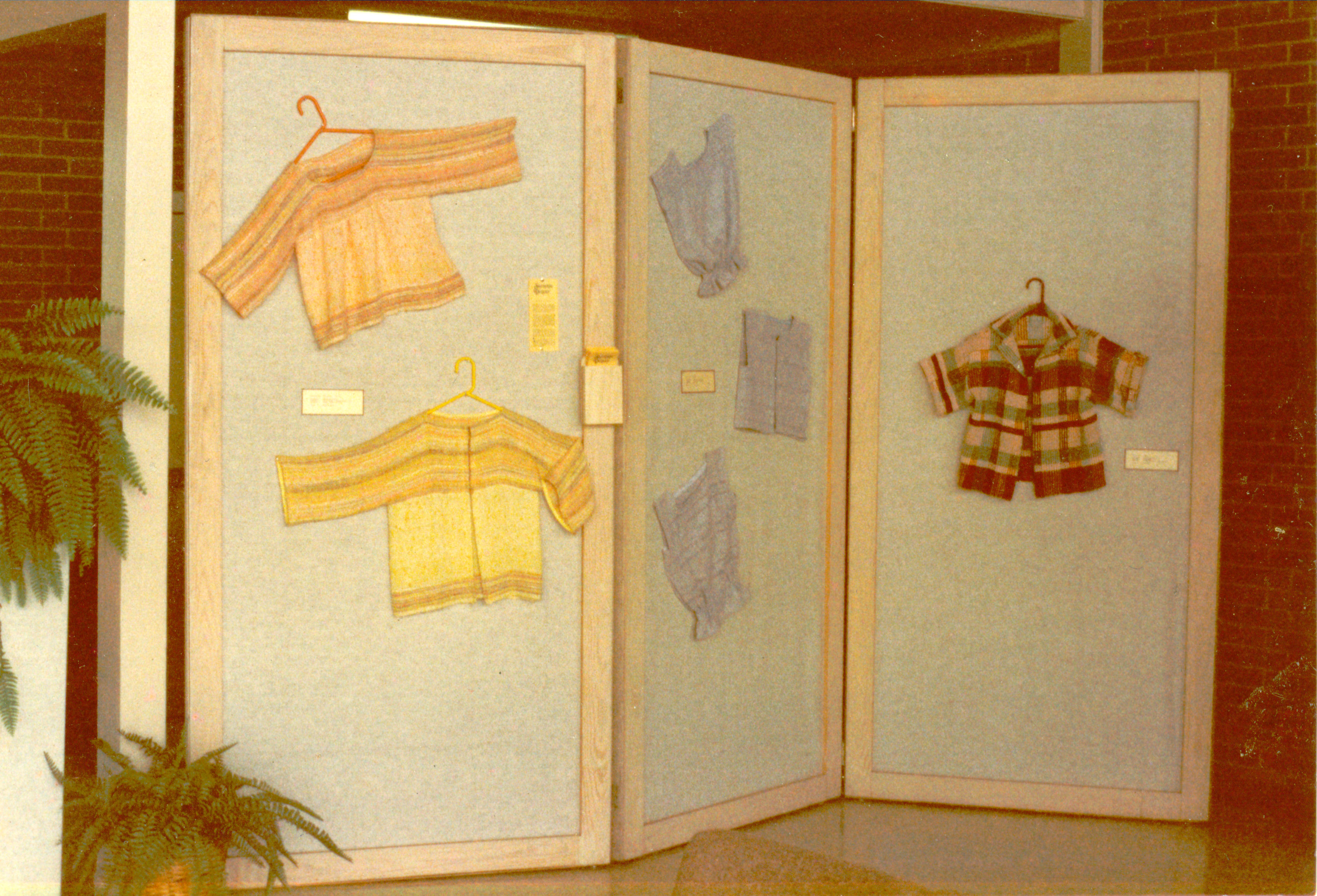 Ben Epps Airport terminal, 1985; Athens, Georgia. I displayed ten hand woven pieces for one month. The garments ranged from a full length wool coat to light weigh cotton tops. Shown below are nine pieces, when I find the picture of the tenth garment I will post it.